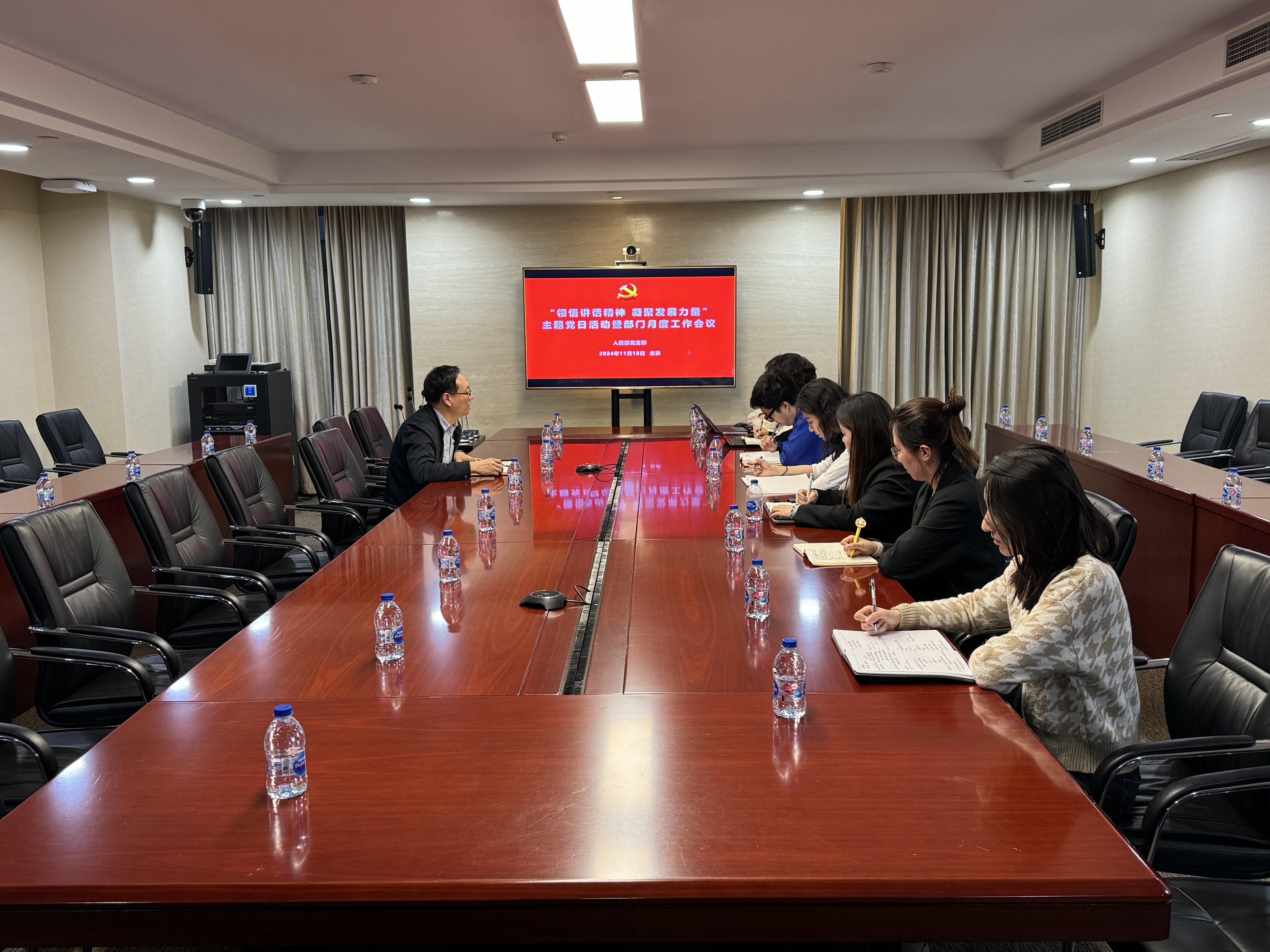2024年11月18日,中国电能人资部党支部开展“学习讲话精神 凝聚发展力量”主题党日活动。人资部党支部书记郭远帆主持会议,党支部全体在京党员、入党积极分子参加会议。