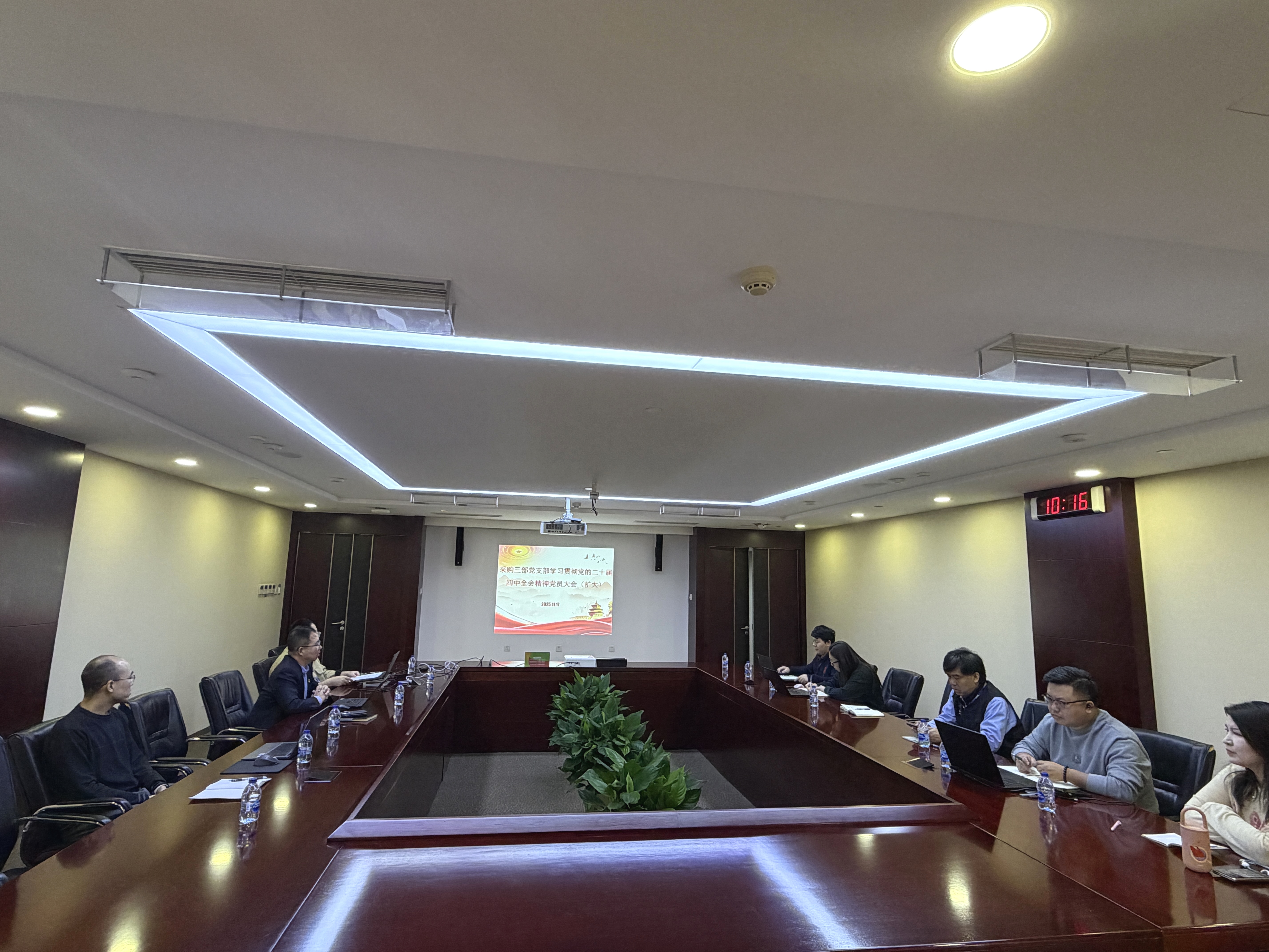 11月17日,采购三部党支部组织召开专题学习会,深入学习贯彻党的二十届四中全会精神。采购三部党支部副书记、副总经理于波涛主持会议并以《“中国科技新六边形”产业格局下电力采购业务的突破路径》为题,围绕贯彻落实党的二十届四中全会精神讲授专题党课,党支部全体党员、干部员工以线上线下相结合的形式参加会议。