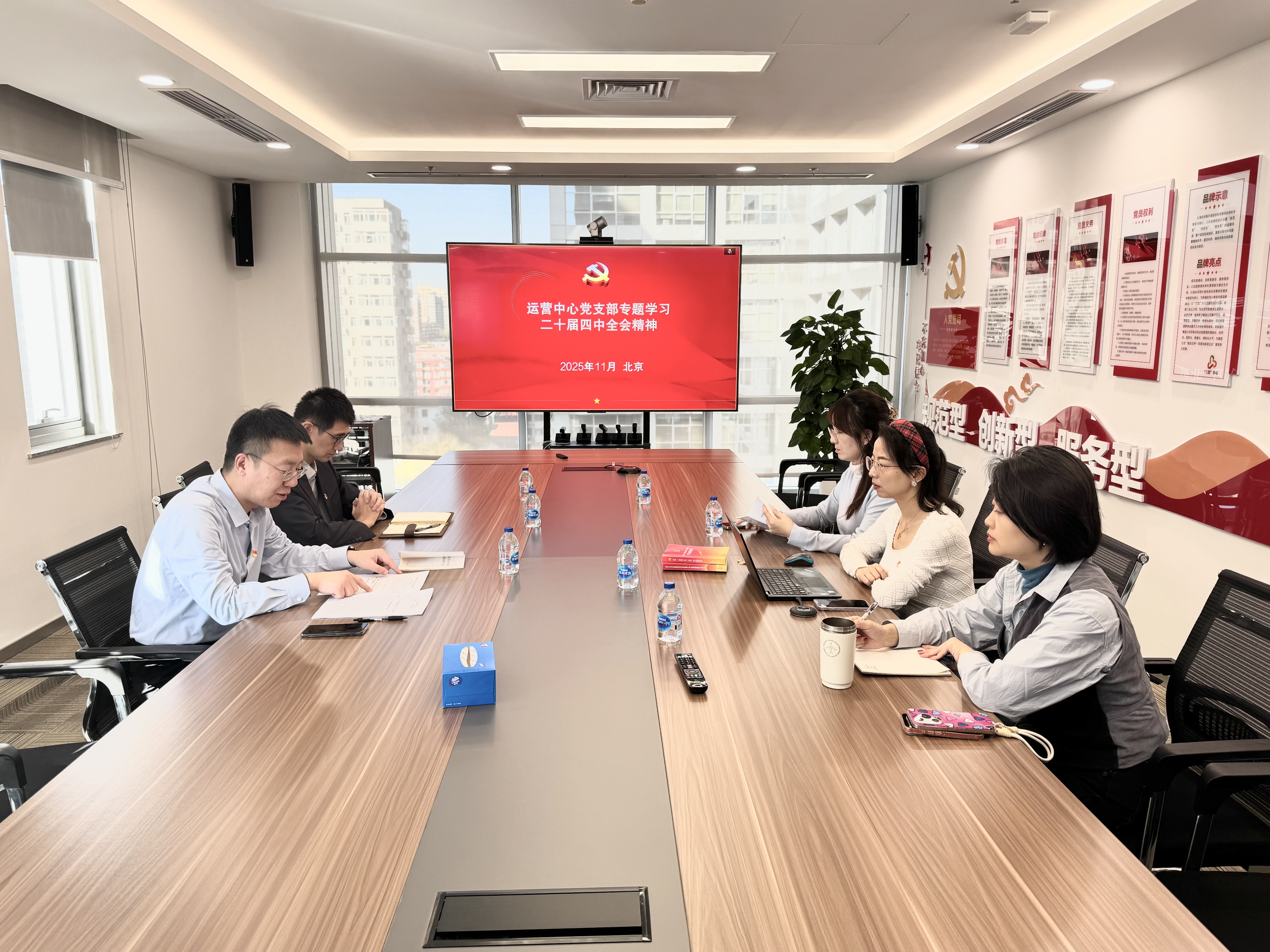 会议以“学精神、明方向、强担当”为主题,张学凯带领全体党员原原本本、逐字逐句研读全会公报,深入领会党的二十届四中全会精神要义,重点学习《建议》中“加快高水平科技自立自强”“建设现代化产业体系”“坚决破除阻碍全国统一大市场建设卡点堵点”等重要部署。他强调,运营中心将紧扣部门职责,主动对标二十届四中全会中提到的“高质量发展”“科技自立自强”“安全合规”等要求,以公司建设一流采购与供应链管理服务平台战略目标为导向,锤炼专业本领,既做好集团公司管理部门的专业支撑,又抓实公司采购业务的统筹与服务。