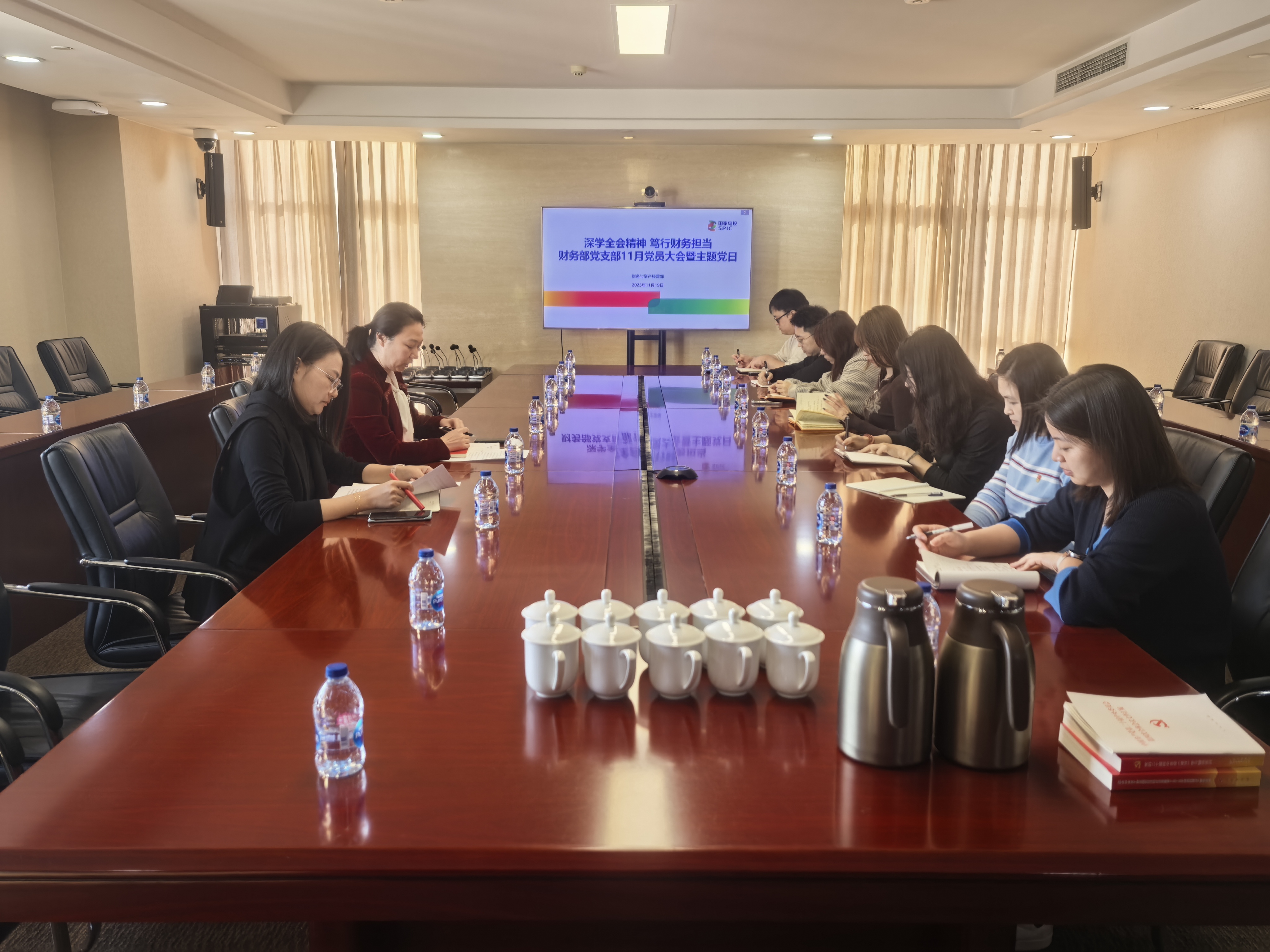 2025年11月19日,财务部党支部组织召开“深学全会精神 笃行财务担当”主题党日活动暨党员大会,深入学习贯彻党的二十届四中全会精神,系统安排部署部门各项重点工作。财务部党支部副书记路娜主持会议,全体党员和入党积极分子参加会议。