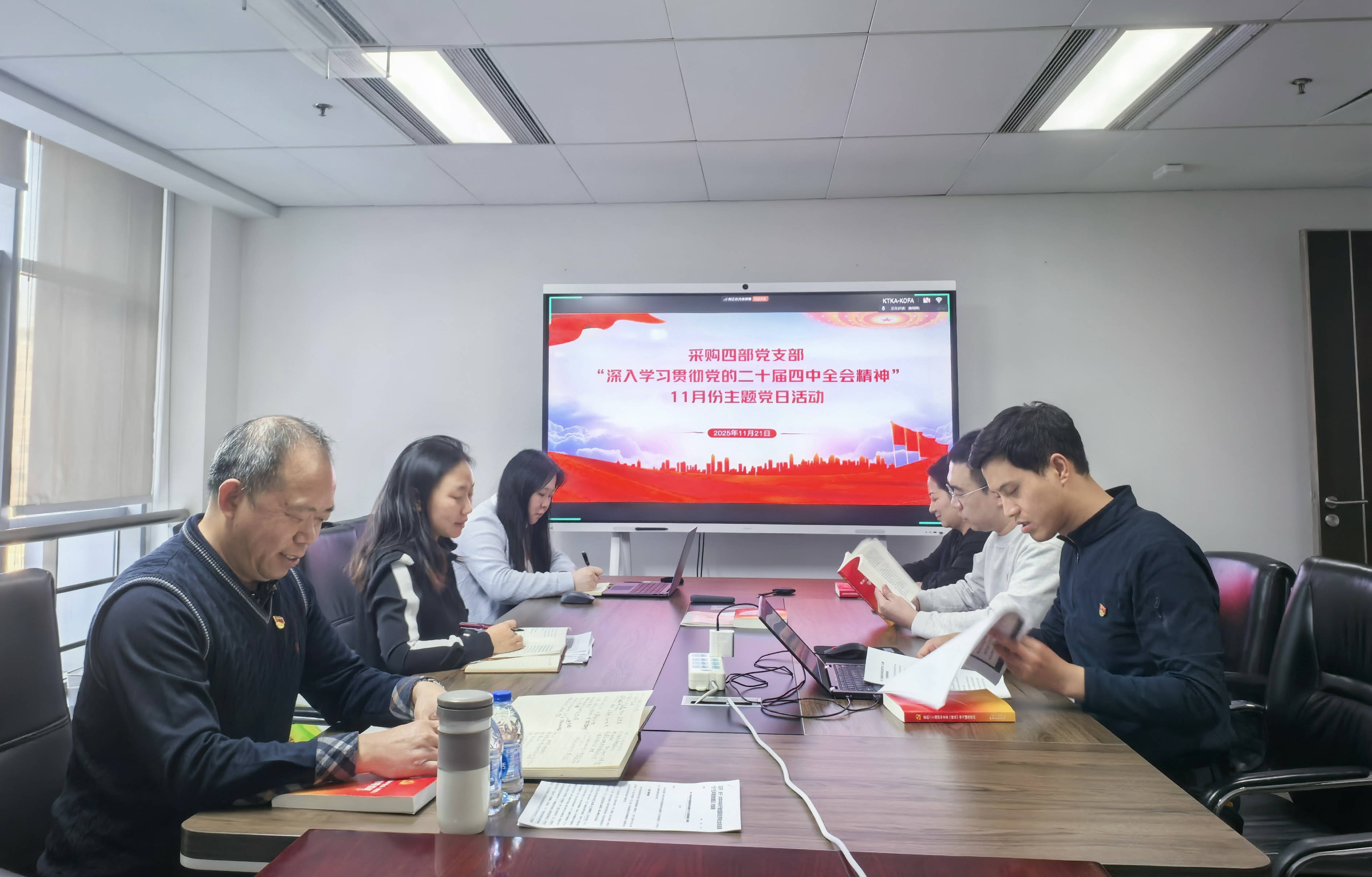 11月21日,采购四部党支部组织开展11月主题党日活动,深入学习贯彻党的二十届四中全会精神,党支部副书记、副总经理(主持工作)王志梅主持会议,部门全体员工参加。