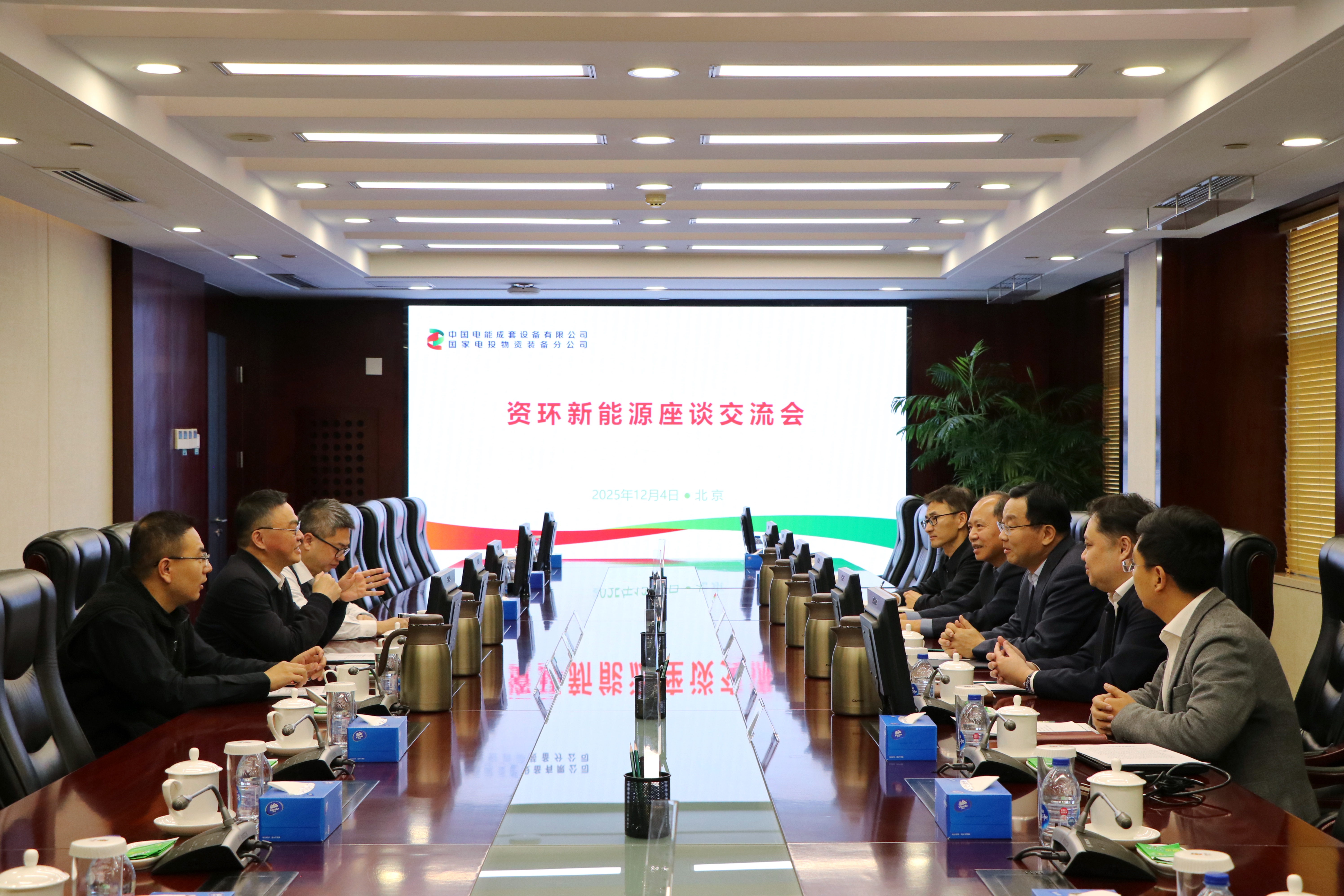2025年12月4日,中国电能党委副书记、总经理胡亚民会见来访的中国资源循环集团新能源科技有限公司(以下简称“资环新能源”)党委副书记、总经理陈英毅一行,双方围绕协同发展、未来合作开展业务交流。公司党委委员、副总经理杨启斌参加会见。