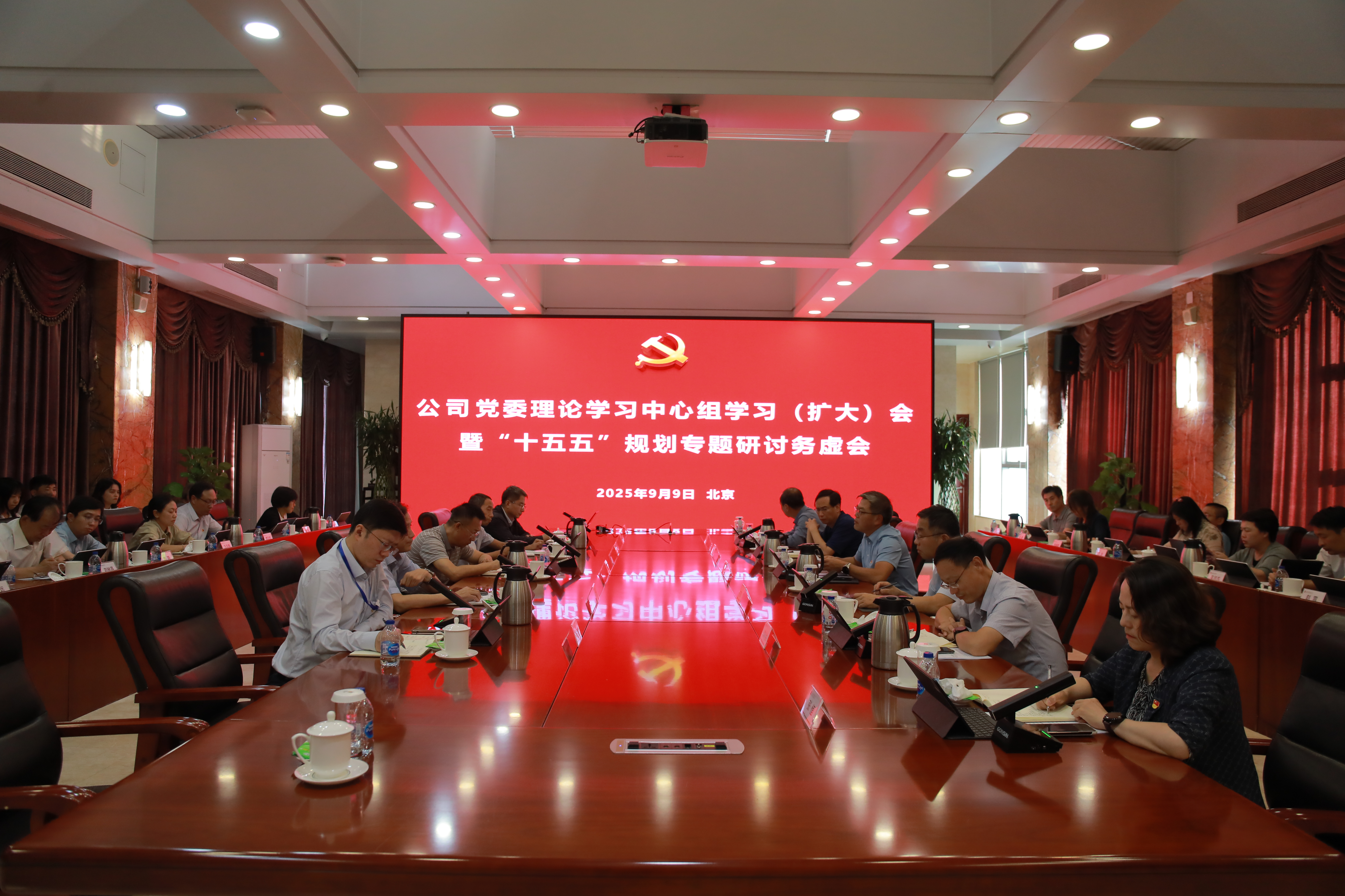 9月9日,中国电能党委召开2025年第六次党委理论学习中心组学习研讨会暨“十五五”规划专题研讨务虚会,持续深入学习领会习近平经济思想、习近平法治思想,全面贯彻落实集团公司“均衡增长战略”,聚焦专业化能力提升主题主线,围绕公司“十五五”职责使命,进一步认清形势、统一思想、凝聚共识,奋力开创公司高质量发展新局面。公司党委书记、董事长怀文明主持会议,党委副书记、总经理胡亚民,党委委员、副总经理何玮鹏,党委委员、总会计师沈小龙,党委委员、副总经理杨启斌,党委委员、纪委书记张恒参加会议。