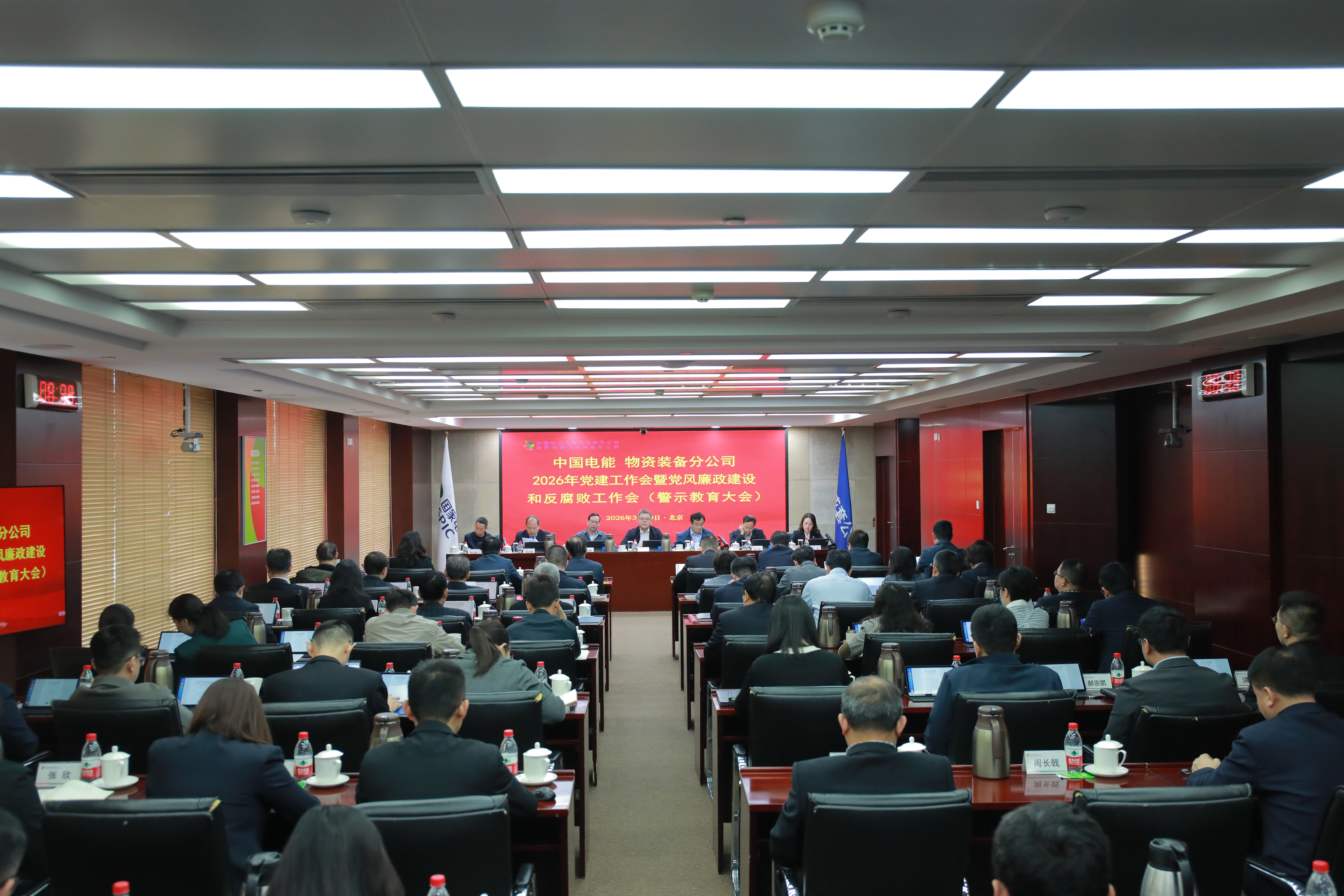 3月10日,中国电能召开2026年党建工作会暨党风廉政建设和反腐败工作会议(警示教育大会),深入学习贯彻习近平总书记关于党的建设的重要思想、关于党的自我革命的重要思想,贯彻落实二十届中央纪委五次全会精神,认真落实集团公司2026年党建工作会暨党风廉政建设和反腐败工作会议部署,全面总结公司2025年党的建设、党风廉政建设和反腐败工作,研究部署2026年重点任务。公司党委书记、董事长怀文明出席会议并讲话,党委副书记、总经理胡亚民作党建工作报告,党委委员、副总经理杨启斌主持会议,党委委员、纪委书记张恒传达上级会议精神并通报违纪违法典型案例,党委委员何玮鹏、沈小龙、张启春参加会议。